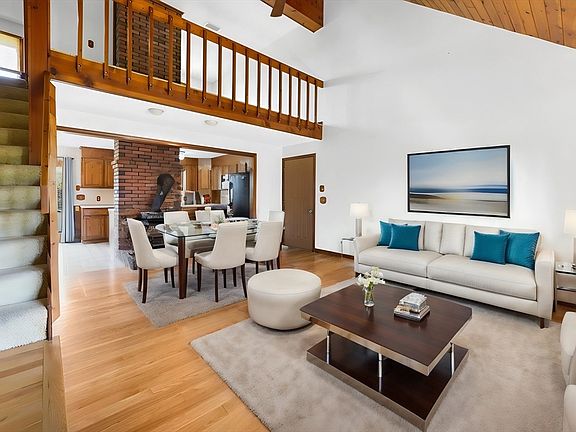 Welcome to this custom-built, one-owner home boasting an open and airy floor plan. This property offers fabulous great room with vaulted ceilings and a wood stove (2023) creating that warm ambience, complemented by hardwood floors and a picture window. The kitchen area, complete with all appliances and ample cabinetry, opens onto a deck perfect for outdoor dining offering scenic views of pastures. The first floor features a main bedroom with hardwood floors, dual closets, and a full bath with laundry facilities. Upstairs, a spacious loft area overlooks the great room and could serve as an additional bedroom, alongside another full bath and second spacious bedroom. Natural sunlight floods the home, highlighting the potential of the great backyard space for outdoor activities. With central air conditioning and your personal touch, this property is ready to become your dream home. Highest & best deadline for Monday 5/13 at 10am