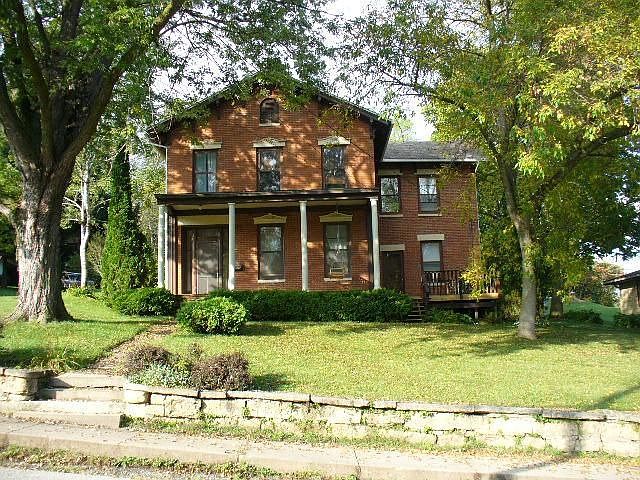 Beautiful 2 story brick home has been renovated and is close to Main St. Galena. Beautiful entry with unique curved walls, also in living room. Many beautiful updates such as newer kitchen with cherry cabinets, farm sink and stainless appliances and private entrance from front porch. Spacious living room with wood burning stove. Large formal dining room. Upper level has 4 bedrooms, full bath and large laundry room. Master bedroom showcases beautiful sliding doors into another bedroom or could be used for private sitting area with master bedroom. Would also make a nice master bath or large walk-in closet. Some newer fixtures and nice tile work in bath. This home has a full length front porch and a super full length back porch with brick columns and concrete floor. Great for outdoor entertaining.