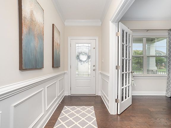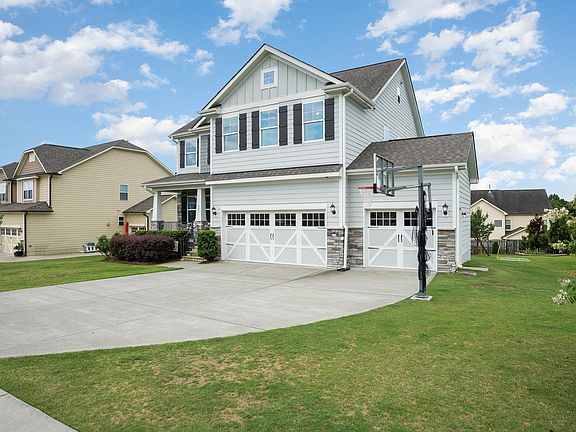 Stunning Granite Falls premium home featuring a coveted three car garage. Immaculate heavily optioned interior. Welcome home to flowing engineered wood floors, plentiful wainscoating through foyer and dining room. Have coffee in the kitchen and overlook the breakfast room and central family room that features a gas log fireplace. Glass doors at the rear lead you to an oversized elevated deck that overlooks the wonderful backyard. Second floor features an open loft allowing a split bedroom plan that affords privacy for all rooms. Spacious primary with trey ceiling, bath with granite top, garden tub and separate shower. Second floor laundry room. Third floor features a 5th bedroom option since it has a full bath, or bonus room! Walk in storage. This home is so thoroughly immaculate, you really must see it!