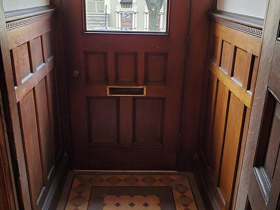 HISTORIC BRICK & BROWNSTONE TOWNHOUSE. Off Lark St. in Center Square/Hudson Park. PRESERVED ORIGINAL WOODWORK (Crown Moldings, Pocket doors, 5 wood/tile Mantels, Staircases, Picture Moldings & Chair-rail , Hardwood Floors & Baseboards......all in beautiful condition. 3 Floors of living + UPDATED Garden IN-LAW APARTMEMT (1bdrm + Rear Study). Large Trex Deck (2019) and Fenced yard. Additional delightful details: MODERN ART-STYLE STAINED GLASS DOOR; TRANSOM WINDOWS OVER DOORS; BUILT-IN WALL OF BOOKSHELVES; DEEP CLOSETS; RUBBER ROOF; ATTIC /SKYLIGHT/light-shaft FANS. Flexible Spaces - 1st Floor Middle Room can be a dining room and back room the living room...leading to the outside deck. Laundry room on 3rd floor. Rubber Roof 2008. Circuit Breakers.