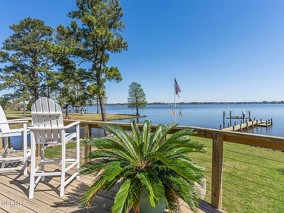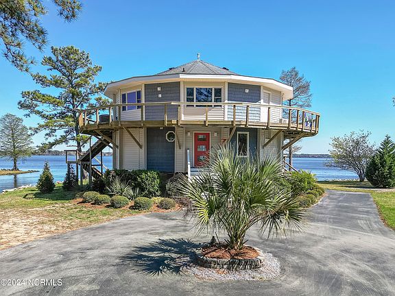 $10,000 BUYER'S INCENTIVE! One word...UNIQUE! Lovingly known as The Round House, this exquisite home offers the most spectacular sunrises. Pulling up to the beautifully, landscaped yard with the river in the background, your troubles just melt away! Entering the leaded glass front door, the views never stop. The living room has ample space for family gatherings and a bar area complete with small fridge and shelving. The kitchen island boasts granite countertops, and the custom wall cabinets have marble countertops for a truly unique and gorgeous design blend. The walk-in pantry provides ample space for storing your kitchenware and small appliances. This level also has 2 guest bedrooms and a full bath with marble countertops, tile flooring, and shower/tub combo. Climb the spiral stairsteps to a remarkable 1200+ square foot primary suite. You don't even have to get out of bed to view the beautiful sunrises. The primary suite offers plenty of space for your bedroom furniture with lots of room to create a cozy reading nook as you look out at the water. This space also has a large workout room which could be converted into an office, a nursery or another living space. The huge walk-in closet offers plenty of space along with the laundry closet and additional storage. The primary bath has custom cabinetry, granite countertops, and a tiled walk-in shower for two. The upstairs deck wraps around and is perfect for sitting roadside, talking to the neighbors or waterside, watching the sun come up. This home provides an outside entry at every level for safety and convenience. The deck on the first level has a natural gas fire pit and is the perfect place to host parties or just chill after a day at work. There is also a hot tub located on the main deck. The home has a boat and kayak dock with boat lift, built to last with concrete slats. Underneath the home is storage for kayaks and other items. Many other features make this home truly UNIQUE!