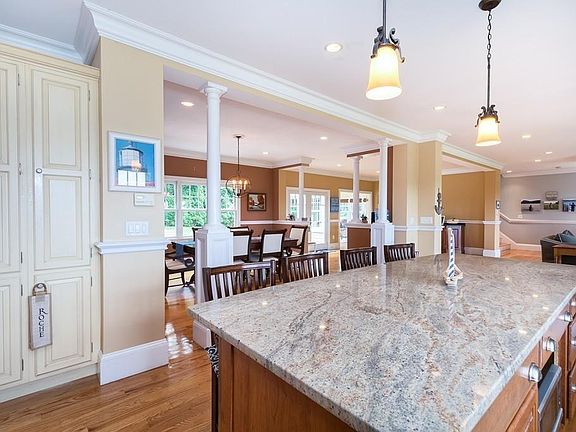 This Nantucket Colonial has sweeping water views throughout. Drive up the long driveway to this tastefully appointed home with an inviting farmers porch. This home sits perfectly on 1.23 acres, and has over 5,000 square feet of living area including 5 bedrooms, 6 bathrooms, 3 car garage, hardwood floors throughout and an open floor plan ideal for entertaining. First floor features a custom chefs kitchen with sub zero fridge, Viking gas stove, and a boch dishwasher. The family room features a gorgeous stone fireplace an awesome additional first floor en-suite bedroom. The 2nd floor has 4 bedrooms, 4 bathrooms and laundry room. The third floor bonus area is perfect for playroom/family room/guest suite. 1st floor bedroom suite or 3rd floor space is perfect for a au-pair or in-law. This home offers space for any size family and is perfect for the lifestyle that Scituate has to offer! This property is a quick 5 minute walk to a private beach.