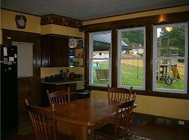 Country home with all large rooms with high ceilings, new double pane vinyl windows, fenced in play area for children or pets, updated furnace and air, enclosed sunporch 25x7, covered porch off back, master bedroom on first floor, glass pocket doors to dining room, window seat in living room.