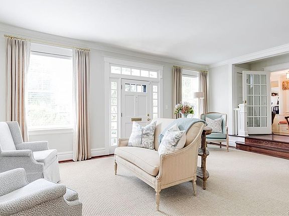 Built 100 years ago as a hunting lodge, this special house in Westhampton has been beautifully expanded & renovated in recent years. 9'3" ceilings & large windows lend an open, airy feel to the bright interior. Cased, wide openings provide great flow from lovely formal rooms to casual family areas. Newly refinished hardwoods & custom blinds throughout. Living room w/FP adjoins spacious family room w/FP, wet bar & powder room. Dining room w/French door; stunning, renovated kitchen w/Carrera countertops/island, subway tile backspl, farm sink, SS appliances, open to sitting area w/oversized French doors to rear terrace. Mudroom area w/separate entrance adjoins sitting area. A pair of original balusters frame a charming landing from living room to cozy office & to front & back staircases. 2nd floor offers 9' ceilings, 4 bedrooms & 2 baths, including a spacious master suite w/vaulted/beamed ceiling & new, vaulted master bath w/generous quartzite-top vanity & large shower. Lower level features rec room, full bath & laundry room. Outside, there is a wraparound brick stoop w/arches, bluestone terrace w/brick FP, lush back yard w/garden shed, cobblestone-edged driveway & detached garage.