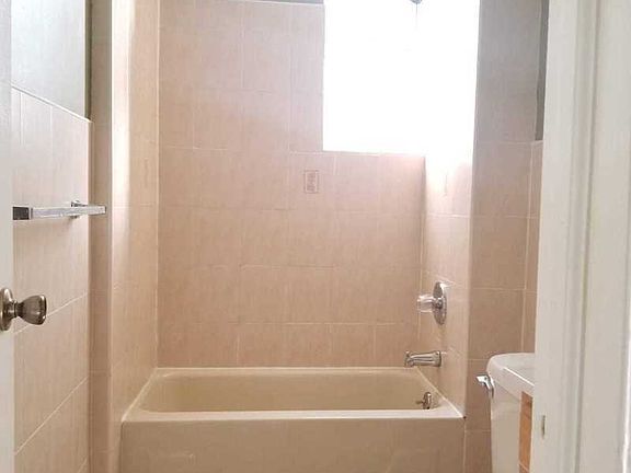 Spacious bright and sunny 1st floor one bedroom apartment. This is a quiet bldg. with 4 apartments. Beautifully tiled bath with upgraded fixtures, toilet with tank, towel racks , eat in kitchen and ample cabinets. Closets in bedroom. Multiple transportation options via 3 train, 35 bus, 14 bus and other.