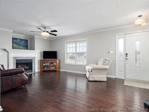 Stunning well-maintained home with peaceful elevated views in Overhills Creek. Newly painted and all carpet replaced. Modern kitchen with stainless steel appliances, granite counter tops and backsplash. 4th bedroom has 2 closets and an adjacent home office / play-area. Very large screened-in back porch overlooking a big backyard with privacy fencing. The owners added a landscape retaining wall in the front yard and planted lots of plants and fruit trees in the backyard. 2-car garage with newly-built shelving for storage. Great location with quick access to schools and Ft. Bragg. Wonderful move-in ready home that is a must-see.