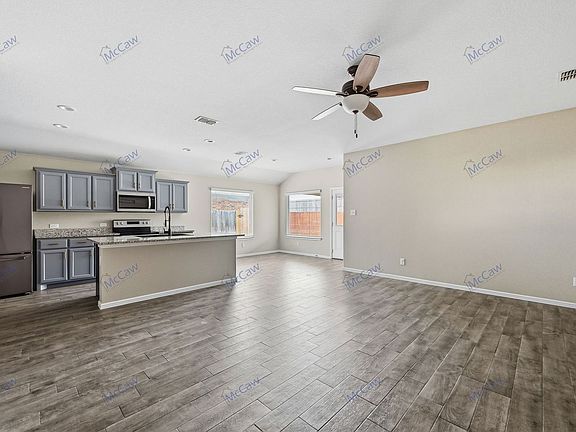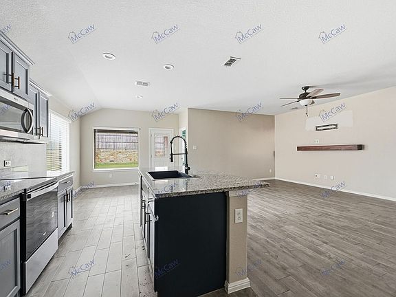 Updated 4 Bedroom 2 bath home in Sought-After Watersbend South and the new Eagle Mountain High School! Discover this beautifully maintained home offering 4 spacious bedrooms and 2 full bathrooms in a thoughtfully designed split floor plan. The open concept layout creates a seamless flow perfect for entertaining or everyday living. One of the bedrooms is oversized and versatile, ideal as a second living area, game room, or home office. You will love the stylish updates throughout, including modern ceiling fans, fresh designer paint, sleek cabinet hardware, a farmhouse sink with an upgraded faucet, and contemporary fixtures and mirror in the guest bath. Indulge in the spa-like feel of the updated rainfall shower head or unwind outdoors on the extended back patio perfect for morning coffee or evening gatherings. Located in a master-planned community offering exceptional amenities to include 2 sparkling swimming pools, a splash pad, playgrounds, walking trails, and a clubhouse. Just minutes from shopping, dining, with easy access to DFW Airport, this home combines comfort, style, and convenience. Don't miss your chance to own this move-in-ready gem!