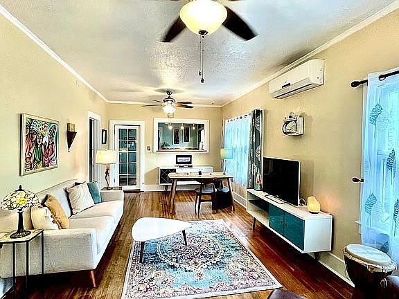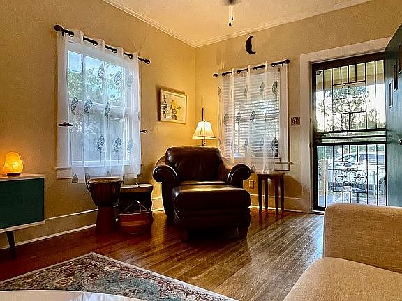 1920 Craftsman Bungalow with detached garage/laundry room, fenced yard, on street parking and alley access. Gree split unit for heat and cooling. Saltillo tile in Kitchen, Bath and Office. 9 foot ceilings and lots of windows make it light and airy! New wiring, plumbing, lighting, gas line and patio 2018. New metal roof and paint 2020. Paint, landscaping, fence 2022.