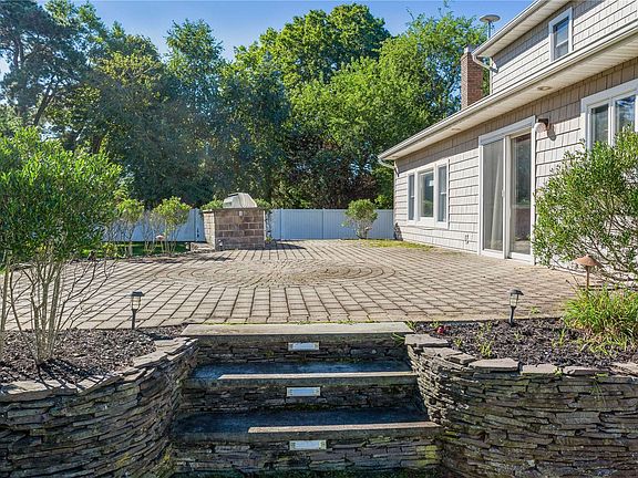 BACK ON MARKET with a Brand New Single Layer Roof!!! This classy, yet cozy 4 bedroom, 2.5 bath Bohemia Colonial boasts a 2 car garage, full basement, central air, master bedroom ensuite, sunken den, gleaming hardwood floors, recessed lighting, custom moldings, skylights, and so much more. Situated on a shy half acre of fully fenced, pristinely landscaped property, outdoor living awaits with a tremendous brick patio and built-in cooking area. Furnace and hot water heater are less than 2 years old. Don't miss this one!