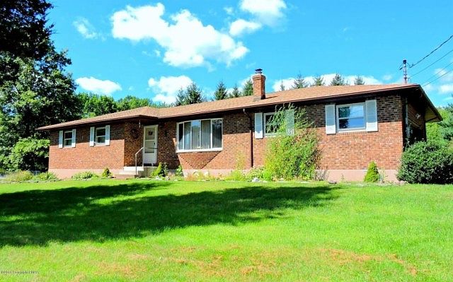 STROUDSBURG Well-Constructed 4-Sided 3BR SOLID BRICK RANCH Home w/ FULL BASEMENT on Gorgeous Flat Cleared FULL ACRE+ of Property! NOT IN DEVELOPMENT! NO DUES! Located Just Minutes to I-80, NEW Camelback Lodge & Crossings Premium Outlets! Home Offers Large Eat-In Kitchen w/ Peninsula Countertop/BREAKFAST BAR Plus, Bright Living Room w/ Big Bay Window! Convenient First Floor Laundry! Expansive Full Daylight Basement w/ Woodstove, 2-Car Garage w/ New Garage Door, NEWER ROOF & Large Outdoor Storge Shed! LOWER TAXES! Call Today for Your Private Showing!