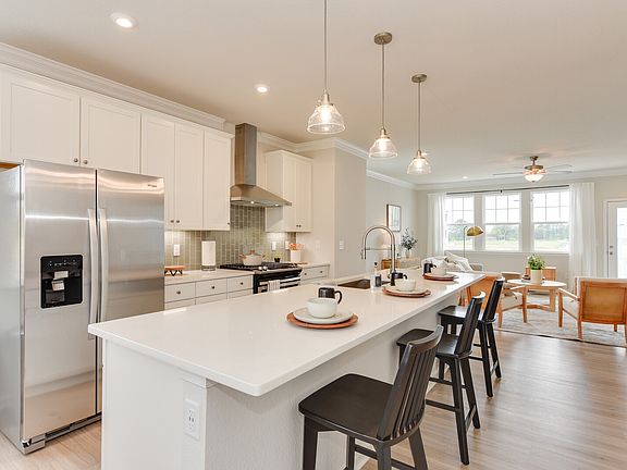 The Juniper is a one of our homeowner's favorite floor plans at The Reserve at Grassfield with it's open concept second floor living. This home has a 2 car garage, a flex room, perfect for an at home office or hangout room, full bath and mudroom with large cubby bench on the first floor. The second floor, you'll be welcomed by a large kitchen and expansive island, flanked on either side by the living and dining spaces. Get cozy in the spacious living room with gas fireplace with built-ins. The third floor is home to the primary suite and two secondary bedrooms, the laundry and a full bath. *selections may differ from photos