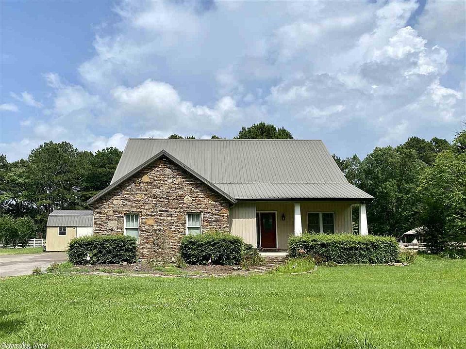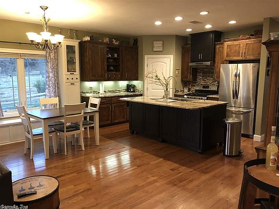 Custom built, energy efficient Craftsman style home with stocked pond & waterfall on 6 acres. Large open floor plan. Kitchen w/granite counter tops, island and dining. Great room w/fireplace overlooking the pond. Master bedroom and guest bedroom down. Bedroom and bonus room up- could be a 4th bedroom. Lovely bath with soaking tub up. Covered porch in back. Two car garage. RV Parking with electric hook up and workshop area w/electricity. Geothermal HVAC. Minutes to Greers Ferry Lake and Little Red River