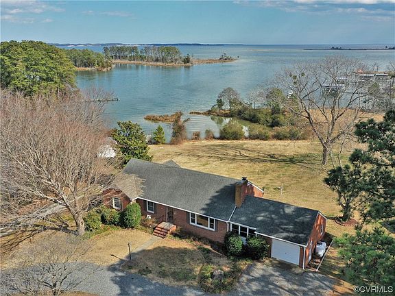 Come by Land, Sea or Air! When you arrive at Salt House Cove on Locklies Creek, you will find a world or relaxation, oysters galore, crabs waiting to be steamed, & prime fishing waters within plain sight or boat to Meroir & have a few on the half shell w/your favorite beverage. This beautiful 1.6 acs. of waterfront, known as Salt House Cove, w/120 ft. pier & dock w/boat lift, mooring pilings, 24' x 16' sun deck w/100-amp electrical service & water will welcome you & your guests for every occasion! Situated high on a knoll above the 100 & 500 years flood hazard zones w/NO flood hazard insurance required, the sturdy brick ranch home w/walkout basement features 4 bedrooms & two full baths, dining room overlooking the water, large living room w/fireplace, sun room, & attached garage. In the walkout basement, you will find an additional full bath, laundry room, storage, and ample space for a home office, bunk room, efficiency apartment, etc. There is a very large walk-in storage area adjoining the basement and a 12' x 20' storage shed w/electrical service offering plenty of room for your land & water toys as well as lawn & garden equipment.