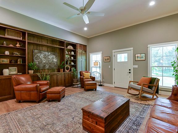 1st-TIME OFFERING: Enjoy nature's serenity from this beautiful 4BR/2.5BA custom-built home located on more than 10 acres in the picturesque community of Forsyth's Shoals Bend. This classy 'farmhouse chic' residence has everything you're looking for: The sprawling covered front porch welcomes you inside the living room with 11' ceilings & 9'x15' wall of alluring built-in cabinetry to display whatever you wish & offers ample storage for stowing the necessities of life-well-lived. Home boasts open concept living/dining/kitchen with thoughtful kitchen layout, tasteful backsplash, quartz countertops, and plenty of storage & counterspace. Split bedroom floor plan hosts 2 large secondary bedrooms divided by guest/hall bath, & primary bedroom suite (just across the living room) has step-in shower, wonderfully designed primary closet, and six-foot windows. From the kitchen, follow the Butler's Entry (complete with display nooks, shelves and more built-ins) stopping along the way at the walk-in pantry, dedicated laundry room, access to the 2-car attached garage and enjoy the gratifying feeling of efficiency. The end of the hallway brings you to the LARGE 4th bedroom (previously utilized as a family room), complete with 1/2 bath and access to the 12'x46' covered back porch quintessential for entertaining or taking in the quiet solitude of the Ozarks landscape. The 10.43 acres is home to abundant wildlife and wet-weather creek for great adventures enjoyed by both young & old. Privacy and seclusion abound this ideal property just minutes from Bull Shoals Lake and all the conveniences of Forsyth. 30 minutes to Branson/Hollister/Hwy. 65