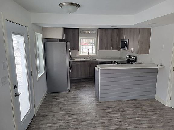 4 br 2 bath w heated double garage. Fully remodeled new siding, windows,kitchen cupboards, bathrooms, interior doors trim linoleum paint and carpet. New propane furnace, air conditioning, appliances, on demand water heater boiler combo for floor heat. New concrete front patio with crushed asphalt for driveway. City sewer and water. Led lighting. Slab on grade.