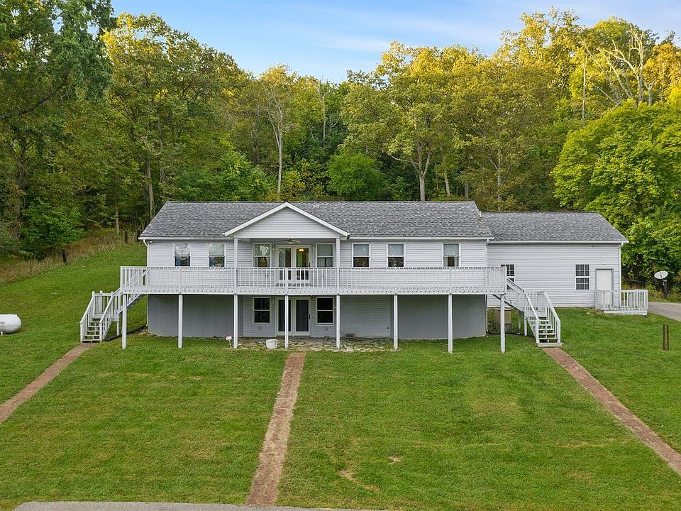 Sprawling ranch nestled on 31+ acres of gorgeous rolling land. Upper level features dual owner suites walkout balcony w/seasonal river views. Full walkout basement perfect for additional bedrooms & bath. 24x48 Barn, pasture and plenty of privacy. Convenient to Cincinnati and Maysville.