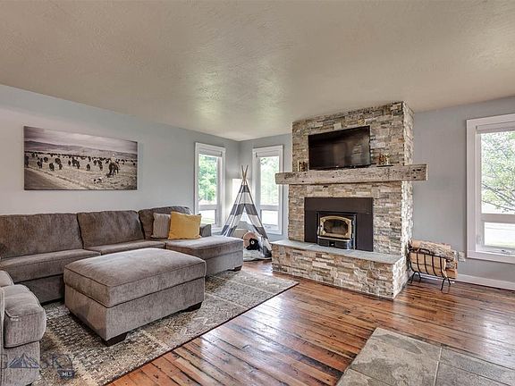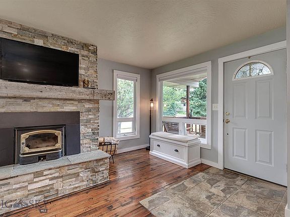 Updated Figgins home w/ tons of upgrades on a large corner lot - pride of ownership shows through! Floorplan maximizes usable space. Reclaimed wood flooring from a grain elevator extends through the home. Stone surround on fireplace w/ reclaimed beam mantle & wood stove insert. Remodeled kitchen w/soft close cabinetry, subway tile backsplash, farm sink & quartz countertops. Stainless kitchen appliances & gas range. New interior doors & hardware, updated light fixtures, upgraded casement & awning windows, new interior trim, field tile flooring in baths, tile surround shower in master, new bathroom vanities. Laundry with storage and utility sink. Washer/Dryer convey. Finished insulated garage w/ workbench. Water heater 2018. Newer exterior siding. Flagstone patio w/ fenced backyard. Large storage shed - above ground garden beds. Extensive perennial landscaping w/ fruit trees. Excellent location close to amenities, trails, downtown Bozeman & MSU. Don't miss the 360 Matterport VR tour!