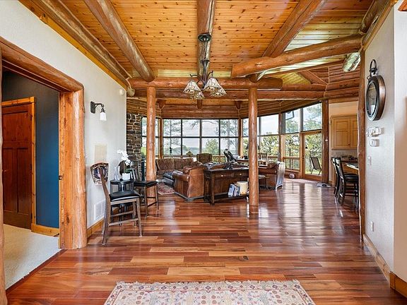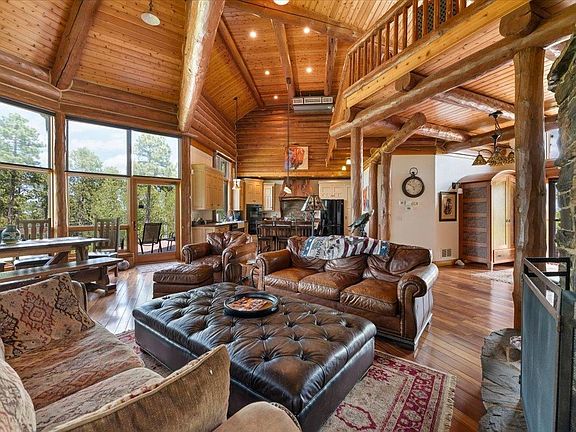 Contact listing agents Michael Warwick 605-641-2569 or Heath Gran 605-209-2052 with Great Peaks Realty. Stunning Log-style home overlooking Lead with some of the best views around! The curb appeal will catch your eye as you approach and will lead you along the stamped concrete walkway to front entrance. Step inside and be awestruck by the log beams that soar over the oval shaped livingroom which is lined with windows and warmed by a huge stone fireplace. Entertaining is a breeze in this gourmet kitchen with huge Quartz center island, dual ovens, and large gas range. From the dining room step out onto the patio that is tucked privately around the back of the home. The main floor suite exudes tranquility and has an oversized bathroom with tiled shower and large jetted tub. Upstairs, 3 additional bedrooms are found, included 2 Ensuites. An oversized loft overlooks the main floor, and offers extra space for family & friends to sprawl out.