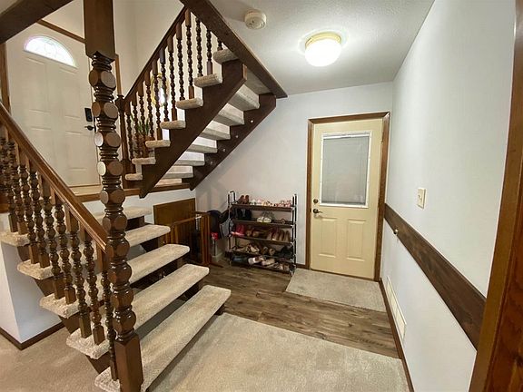 Acreage feeling on the edge of town! Beautiful view off your back deck. Enjoy nature and wildlife - deer, wild turkey and more. Offers 3 bedrooms, 3 baths and over-sized 2 car garage. Garage is 24x24 with 2 separate doors, workbench, and walk out door. Walkout basement features a wood burning fireplace and sliding doors walking out to private patio. Open floor plan. All new floors and lots of updates and a custom build playhouse (negotiable) in the back. This is the perfect place to call home! Washer & dryer are also negotiable.