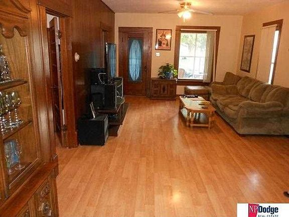 Perfect starter home! Beautiful and move in ready. Welcoming oversized covered front porch. Great details such as large wood molding, all laminate wood floors, oversized garage, and fenced backyard. Corner lot provides very open space. Updated kitchen and electrical. All appliances stay. Within 2 blocks of post office, ball fields, church, pool, and bars. Great small town living with the convenience of the city only 5 miles away! Neighborhood Description Very quiet and old neighborhood. Within blocks of the park, pool, ball fields, main street, post office and church. Close to the edge of town so you can view a neighboring farm while sitting on the front porch.