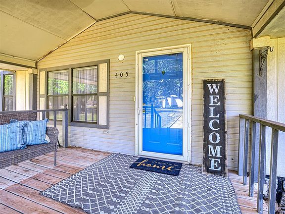 LOCATION, LOCATION, LOCATION.....situated on the very edge of the town of Cashion in a quiet well-kept neighborhood, this charming home offers nearly a 1/2 acre to enjoy. Shaded by several mature trees that provide welcoming curb appeal, there is still plenty of room to have a sizeable garden or just room for kids/pets to burn off steam. Stepping onto the east-facing, covered front porch, you can immediately see how you could spend a relaxing morning sipping coffee while letting the quiet envelope you. Inside you are greeted with vaulted ceilings, a brick fireplace and newer LVP flooring throughout all the common living areas. The kitchen includes a bay window allowing room for a breakfast table in addition to the dining/living room. (The refrigerator can stay with the property.) Just off the kitchen is a sizeable laundry that includes a pantry and access out to the 2-car carport. The owners' suite features vaulted ceilings with a new ceiling fan, 2 walk-in closets and an ensuite bathroom with separate garden tub and shower for your respite from a hectic day. 2 additional bedrooms and guest bathroom can be found off the opposite side of the living room. Oklahoma sunsets can be admired through the living room patio doors or by relaxing on the wooden deck off the living room. The backyard is fully fenced with chainlink, but the property extends beyond the chain link to the metal cattle panel fences that enclose the neighbor's pasture. A below-ground storm shelter is sure to give you peace of mind. Two metal storage sheds provide ample additional storage. If close proximity to the school, quiet neighborhood, and affordable housing are of importance to you, then this place should definitely be on your short list.