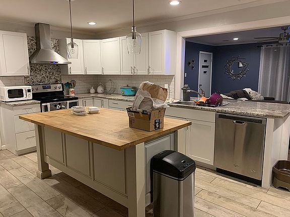 Barn doors separate formal living/dining; New paint inside & out; hardwood floors, crown molding, new stainless appliances, stone counter tops, amazing center island, bathrooms top to bottom, large closets in all bedrooms, corner lot, great area!