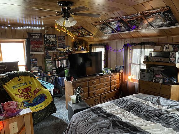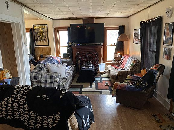 1428 sq ft two story with tons of potential on a double lot. This is a blank canvas waiting for you to give it some love. Furnace replaced in 2019. Ceiling fan replaced in 2019. Gas fireplace. Large walk in closet. Home has ramp for handicap accessibility. Home was the first tavern in Hebron before it was converted into a home! Sold as is.