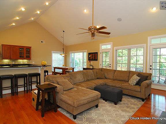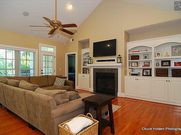 IMMACULATE Craftsman custom split floorplan ranch home boasts gleaming hardwood floors throughout entire main level. Whole house audio included. Soaring ceilings, heavy moldings, can lighting, oil rubbed bronze hardware and lighting throughout. Gourmet kitchen with vaulted ceiling, custom cabinets, enormous breakfast bar, wall ovens and custom hood over cooktop. Custom pull out pantry shelves. Owners Suite w/hardwood floors, private access to covered porch, His & Her walk in closets. Private bath with whirlpool tub, separate shower w/ frameless glass enclosure, dual custom jets, body sprays and hand held shower head. Bonus room/In-Law Suite/Media Room with full bath and 5.1 surround sound.Fresh paint and 2' Faux wood blinds throughout.