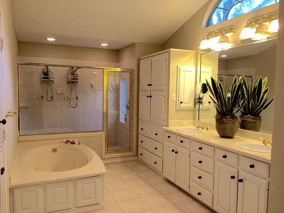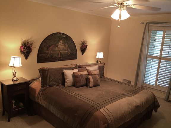 This 4 bdrm, 3 bath home features open floor plan, 2 living areas, 2 dining areas, saltilo tile floors, ceiling molding, field stone fireplace w gas logs, laundry rm, custom cabinetry, double pane windows, ceiling fans, 2 wood decks, 2.5 car garage, cottage style storage bldg & is professionally landscaped. Master bath has dual shower heads, jetted tub, walk-in closet, private toilet rm, built-in ironing board & ext. French door.