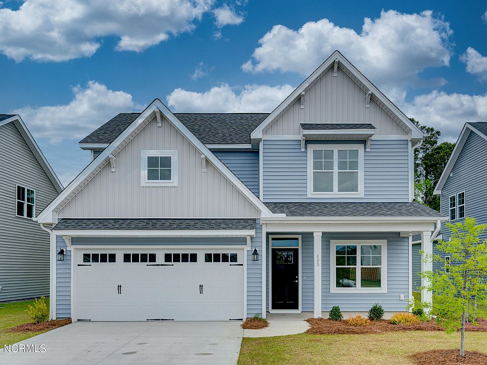 Welcome to the Sea Breeze! This home is lovely on the outside with curb appeal, a covered front porch, and a covered back porch and STUNNING on the inside! Walk in and see the formal dining room with it's on trend trim work. Move into the kitchen and take it all in! The island has QUARTZ countertops, pendant lights, and staggered cabinets. A glass front pantry, soft close drawers, subway tile, stainless appliances...all of these create a wonderful chef's kitchen just waiting for you. Ease on in to the living room and fall for the charming gas fireplace and the soaring vaulted ceiling. Then it's on to the Primary Suite. Just wow! This large bedroom has a fantastic tray ceiling and the en suite bath is awesome. With it's large tiled shower and it's very own linen closet, it's sure to please. Upstairs, you will find three more bedrooms AND a loft area. One bedroom has it's own en suite bath and the other two share another full bath. While the loft area is just perfect for any number of uses. Take in the summer nights on your covered porch with pond views. Epoxy garage floors. Magnolia Reserve is a gorgeous new neighborhood in the Surf City/Hampstead area with an easy commute to shopping, restaurants, services, and yes! BEACHES! Hardison Building adds all those extra touches you've been looking for so that you can move in and start living that beach life right away. Don't miss out on seeing these elegant homes by this phenomenal builder, make your appointment to be wowed today! **Similar Photos and Cut sheets are representations only. Builder reserves the right to alter floorplan and features. Buyer to verify schools.