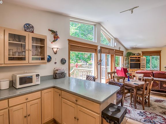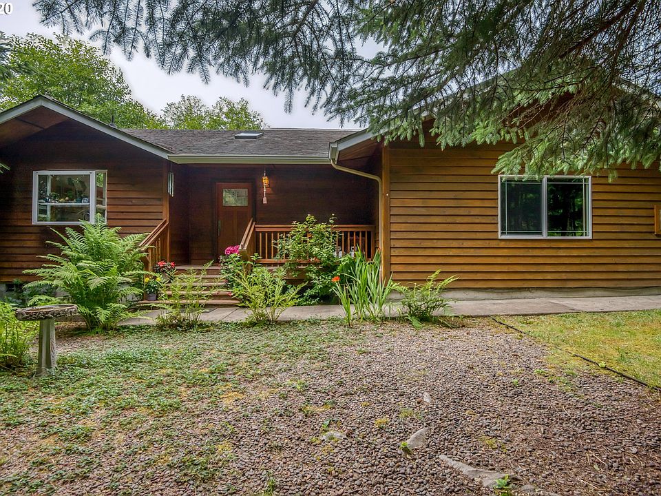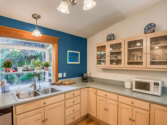 Beautiful Coastal Home, lots of trees, privacy,mature landscaping, fruit trees on a dead-end street! Located within a short distance to beautiful ocean beaches, bay and rivers to enjoy the wonders of the Oregon Coast! This single level home with 22' vaulted ceilings offers a large main bedroom, guest bedroom, 2 full baths, attached finished 2 car garage, lg pantry/laundry/mudroom, stainless steel appliances, gas fireplace in main bed, On Demand water heater, propane range, Jotul wood stove!