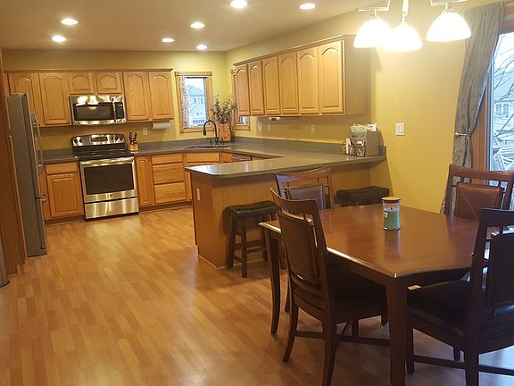 This is a beautiful, three bedroom two-story with 1,927 sq. ft. on two floors. First floor features open plan with a front room for an office, den, or formal dining, spacious kitchen with peninsula for bar stools plus lots of cabinet storage including a pantry. The dining area includes sliders to the large wood deck. Family room has a fireplace with surrounding built-in cabinets and shelves, and a large bay window overlooking the large backyard. Upstairs features 3 bedrooms, 2 full baths, and a laundry room. Master bedroom has walk-in closet and private bath with jet tub. The basement is partially finished, stubbed for a bathroom, and ready for you to make it your own. Storage shelves are included. The house includes many nice touches like window seats in the two bedrooms and decorative trim work throughout. The large fully fenced in yard provides lots of room for kids to play and includes a playset and a concrete patio for entertaining friends and family. The neighborhood is very family-friendly!