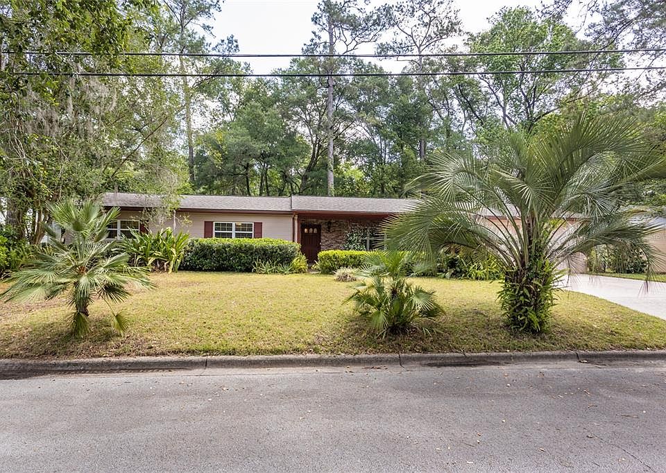 Beautifully maintained 3 bed 2 bath home in the subdivision near the University of Florida. Over 2,200 sq feet with stunning remolded kitchen and baths with an open concept. Subway tile backsplash from the granite countertops to the ceiling. Tons of recessed Halogen lights... great for prep and cooking. Bosch 5 burner gas range. Wood (42") uppers and base cabinets with pull out drawers with "soft close" drawers and doors. Gather around the granite countertop bar/peninsula with seating for 3. Both baths completely remolded with new cabinets, granite counter tops and tile. Beautifully polished terrazzo flooring in main house. Terracotta flooring in the Family Room. 2 car garage with separate automatic doors. Fenced in backyard. Easy commute to University of Florida, shopping, restaurants and medical. Roof 2017, newer windows, 50 gal HWH, electric panel upgraded to 200-amp ATT Fiberoptic available. Washer/ Dryer/ Refrigerator convey but not warranted. No HOA. Buyer & buyer's agent to verify all room dimensions.