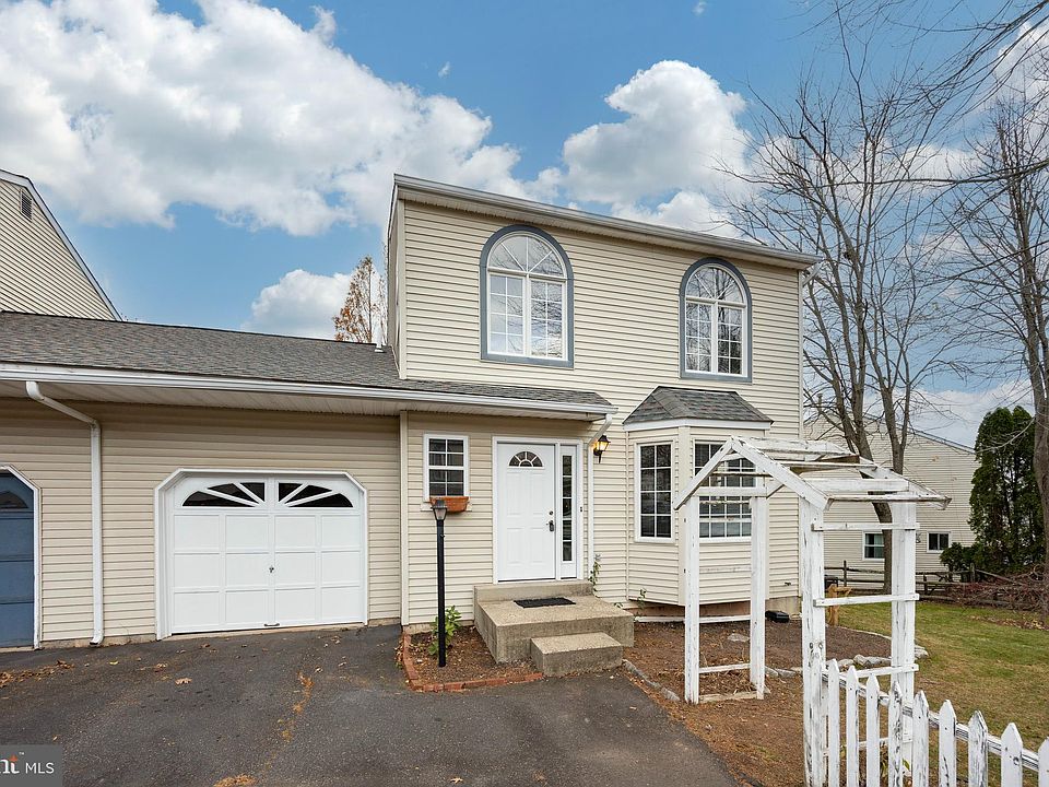 Beautifully updated 3 Bedroom, 2.5 Bath Carriage House in Limerick Township with a 1-car garage. Recent upgrades include a brand-new deck, fresh paint, and new carpeting throughout. The first floor features a convenient powder room, an eat-in kitchen with a gas range and dishwasher, and a spacious living/dining combo perfect for entertaining. A slider off the living room leads to the new deck and fenced rear yard. A bright family room with skylights and garage access completes the main level. Upstairs, you'll find the primary bedroom with an en-suite bath with shower stall, plus two additional bedrooms and a hall bath with shower/tub combo. The basement includes the laundry area. Major systems are in great shape with a new hot water heater (2019) and HVAC (2015). Don't miss out on making this home yours!