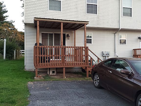 This brick/vinyl siding 2-story townhouse is an end unit. It features a large kitchen which includes a GE range w/above microwave and GE dishwasher (refrigerator is not included), tile flooring and sliding glass doors which lead out to a covered deck. Other flooring: Living room/laminate; bedrooms and steps/carpet; and bathrooms/tile. All 3 bedrooms have ceiling fans. Heating/Cooling: electric heat pump w/central air. There is a full unfinished basement.