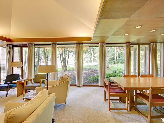 Architect Phil Feddersen designed home offered for sale. Commissioned and completed in 1962, by original owner. The home offers approximately 1472 main level square footage. The living room and dining room are flanked with southern facing glass walls which defines a peaceful setting. The large living room has a fireplace and is open to the informal dining room. The eat-in kitchen is positioned for easy access throughout the home. There are three main level bedrooms. There is one full bath and one half-bath on the main level as well as a main level utility area. There are skylights in the bathrooms and the utility area which provides light to the lower level. There is a three season porch leading to a beautifully landscaped yard with mature trees. The built-in cabinetry in every main floor room is a feature only seen in this design. The lower level is partially finished with casual entertaining in mind.