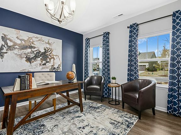Welcome to the desirable community of 12 Oaks in Holly Springs! This move-in ready, one-story ranch home features a bright, open floor plan, perfect for entertaining and every-day living. Enjoy leisurely morning coffee on the back porch while soaking in the peaceful views of water, nature and wildlife on the HOA land directly behind the backyard fence. In addition to amply-sized bedrooms, this 2019 built home features a private office with French doors and a wall of built-in shelving. The chef's kitchen has stainless appliances, a pantry, large center island, gas cooking & abundant counter and cabinet space. The primary bath has a walk-in closet, walk-in shower & a water closet.  Enjoy the resort-style living at The Club at 12 Oaks (www.theclubat12oaks.com/) with its 3 pools, tennis, pickleball, fitness center as well as casual and gourmet dining options. New carpet and fresh paint! Tankless H2O. Corral for garbage cans.