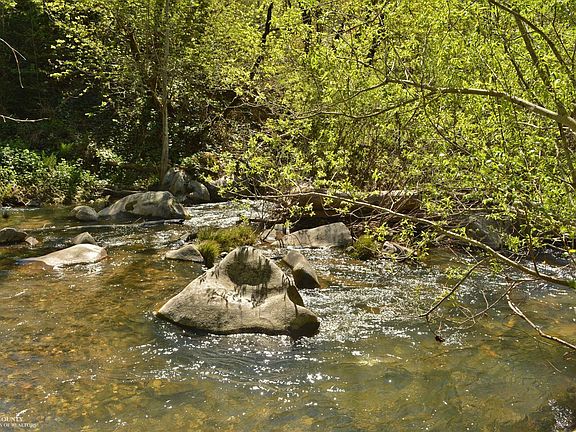Executive living at it's finest. . .Stunning and top quality Cottage style home on Deer Creek with private, deeded walking trail along the water's edge. Located inside the edge of the City limits of historic Nevada City and one of the best Country roads in the County, this Beautiful home features dramatic great room with soaring ceilings and open floor plan, two separate bedroom suites and loads of natural light dancing through each room. Hardwood floors, tiled counters and two window seats surrounding the fireplace, and which open to the musical sounds of the creek. Very private setting with natural outcroppings. Two decks and enclosed sun room allows year-round enjoyment. Stucco and rock siding and extra storage under the house for bikes, skis and toys. This magical home is one of a kind in this price range for waterfront property in the City limits!