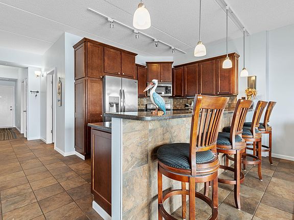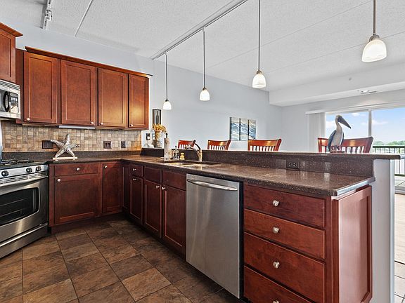 Experience the beauty of lakeside living with this exceptional 2 Bedroom, 2 Bath Condo. Take in stunning views of North & South Pine Lake, where tranquility and relaxation await you right at your doorstep. The UPGRADED kitchen boasts ample cabinet and storage space, featuring elegant quartz countertops and a convenient breakfast bar. The open-concept design seamlessly connects the kitchen, dining, and living room, all thoughtfully adorned with tasteful decor. Step out onto the patio, complete with an automatic screen and a storage area, and soak in the picturesque surroundings. This remarkable opportunity also includes a BOAT SLIP, access to a shared fitness center, a shared Pool, and the added convenience of 2 indoor parking spaces. Situated on all sports PINE LAKE, and access to Stone Lake which is a no wake lake, just minutes away from golf courses, and a mere 1 hour from Chicago, this Maintenance FREE style of living is truly unparalleled. With immediate occupancy available, this furnished unit is ready to become your own personal oasis.