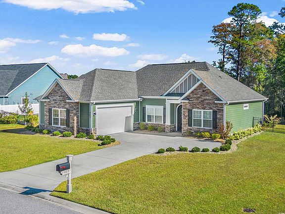 Stunning and prestigious are your 1st impressions with this 3 bed / 2 bath custom build, that perfectly blends style & comfort throughout. Space saving updates, high end finishes and smart technology, high and low, along with pleasant curb appeal surround this home. A beautifully fenced backyard, that is well landscaped, complete w sprinkler systems that can be remote controlled. Welcoming you at the front, is a solid 96" round top "Milan" style wrought iron door that opens the foyer and shines your light oak hardwood floors. Custom coffer ceilings & endless tall detailed crown moldings exudes contemporary elegance and comfortable living that flows into an ideal open floor plan. The formal dining room enjoys plenty of sunshine. The kitchen features lovely white cabinetry next to matching Bosch appliances, a gas slide-in range & dishwasher, are all stainless steel. Granite counter tops all around, finish with the breakfast bar. Adjacent is the open living room with multi layer tray ceilings and updated ceiling fan. A wall mounted TV and slim electric stone fireplace dazzles the room full of color. The master suite is a generous space. The room is refreshed with an updated barn door that leads you to two separate walk-ins with custom closets built ins. The en suite completes with two elegant granite vanity sinks, an amazing tiled glass shower and separate tub. Both 2nd & 3rd bedrooms are good sized, offering plenty of space for family and guests. Large closet space in each, with custom closet built ins. Hardwood floors run throughout with tile in bathrooms and laundry. Laundry breezeway off the kitchen has a full washer and dryer with a wash sink and cabinets space, that lead you into the 2 car garage space. The Garage floor has been updated with sparkle epoxy paint for easy clean ups, and has your on demand tankless hot water heater. Nestled with privacy woods, this home is located in the highly sought after gated community Sago Plantation at Legends. Sago Plantation is a natural gas community with palm lined streets only minutes from shopping, fine dining, golf courses, and of course the ocean and all the attractions / entertainment the Grand Strand has to offer.