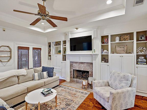 Very clean and well maintained 3BR/2BA one story spilt plan home is one of the best. Walk through the covered front entry into the foyer and on your left is the elegant formal dining room. In front of you is the fabulous den featuring gas log fireplace with built-in shelves and cabinets on both sides with a place for the TV above overlooking the backyard with tons of natural light. On the left side of the house is the gourmet kitchen with smooth surface granite countertops and farm sink. Stainless steel appliances include wall oven, built in microwave, dishwasher and range with smooth surface cooktop which means you have two ovens. There is a fridge with water and ice in the door and lots of cabinets for storage. Enjoy meals at the eat at bar or breakfast room. At the back of the house is the private primary bedroom with tray ceiling. The primary bath has double vanity, soaking tub, separate shower, and walk in closet. Convenient to the kitchen and bedroom is the large laundry room with more cabinets, sink and built in ironing board. On the other side of the house are the 2 other bedrooms with tons of closet space and another full bathroom. Walk out back from the den, kitchen, or the primary bedroom to the covered back porch overlooking the beautifully landscaped fully fenced backyard. Other features of the house include 2 car garage, coat closet, fiber to the home, and no carpet except the 2 guest bedrooms. The neighborhood features a pool with Wi-Fi, clubhouse, playground, little free library, pet station, lighted and landscaped entrances with security cameras, and hosts neighborhood events throughout the year. All this is in the heart of Ridgeland but close to the Interstate, Natchez Trace, Walking trails, reservoir, shopping, and entertainment.