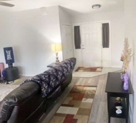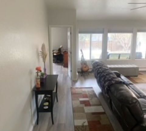 Beautifully updated home with owned solar is nestled in a quiet neighborhood with three bedrooms and two full bathrooms including new vinyl flooring, interior paint, lighting, trim and much more. Living room is open and spacious with vaulted ceilings and natural lighting. Master suite has a large closet, private bathroom with double sinks and an exit to a backyard covered patio overlooking fruit trees, bird bath, two garden beds and custom built smoker. Also includes fenced side yard for pets. Home sits in a great family friendly neighborhood. safe and peaceful neighborhood by Corn Lake Please call to schedule a private showing 951-434-8410