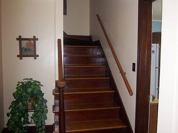 2 story red brick, very clean, move in ready. Furnishings can stay, if desired, but seller will remove if needed. Lovely lot with mature trees, storage building and 2 car detached garage. Fireplace is wood, but gas logs have been purchased, not hooked up. Basement with laundry area, storage room with shelves and walk-in large shower. Newer hot water tank and house has been freshly painted. Home to be sold "As Is", "Where Is" and priced accordingly.