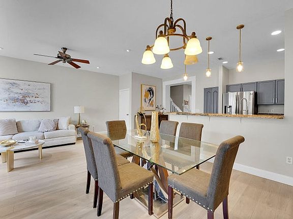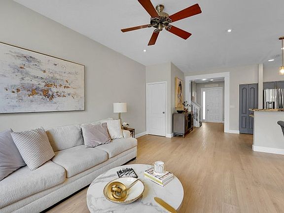 Courtesy of LoKation Luxurious and updated town home in Royal Palm Beach in the gated community of Seminole Estates. 3 Bedrooms, 2 and bathrooms. Spacious and open floor plan with modern kitchen with granite counters, stainless steel appliances, smooth gray cabinets and upscale lighting. Ceiling fans throughout. Bathrooms have been updated for a modern, clean style. The master bathroom features a stand alone soaking porcelain tub, dual vanities with beautiful cabinetry and stand alone shower. Fresh neutral gray and white paint theme. Vinyl flooring. Sliding glass doors open to a screened in back patio with privacy wall for relaxing. The community offers residents a range of amenities, including a sparkling swimming pool, a well-equipped fitness center, and beautifully landscaped walking paths.