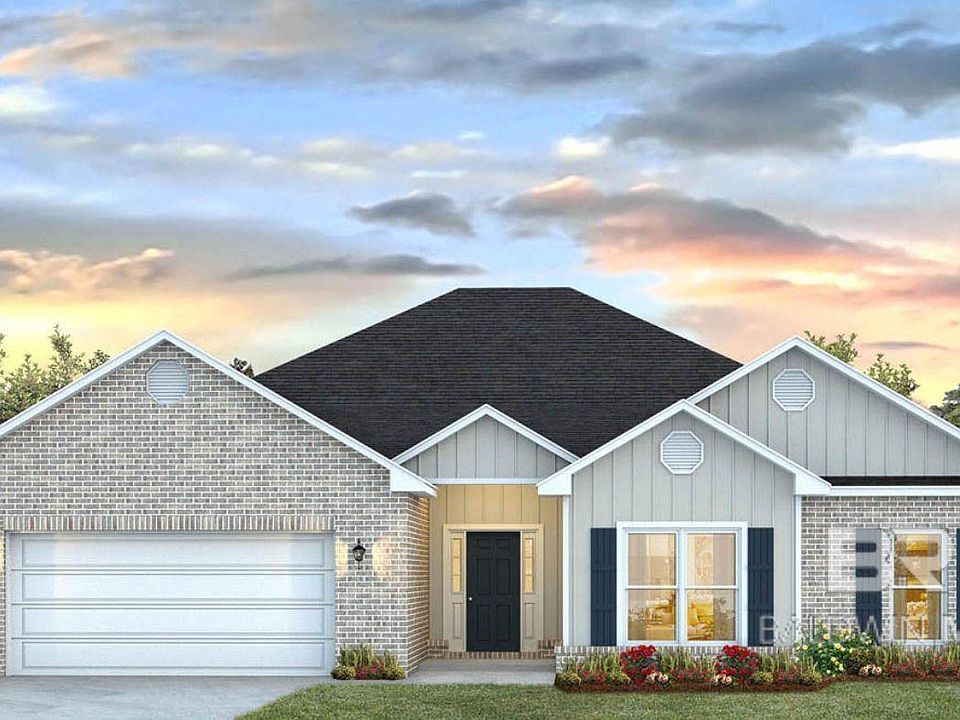 New Phase in Raley Farms now open for sale! Welcome back to one of the fastest selling communities in Gulf Shores, Alabama! This popular community is just minutes from the white, sandy beaches that Gulf Shores is famous for having! Discover sophistication in the Kaden floorplan. This one-story, 5 bed, 3 bath home features 2,409 square feet of open living space and a split bedroom plan. Features of this home include EVP throughout, quartz countertops, soft close cabinets, large breakfast bar, walk in pantry, large single bowl under mount stainless sink, stainless steel appliances, two ceiling fans, trey ceiling, crown molding and two covered patios front and back. There is plenty of room for parking with the attached double car garage and driveway. Community amenities include a large community pool, sidewalks, common area, and more! This home is being built to GOLD Fortified Standards potentially saving you on insurance. The home also comes with a 'Home Connected' (SM) Smart Home package, 1-year builder's and 10-year structural warranty. Home is under construction. Estimated completion of April/May 2025. Pictures are of similar home and not necessarily of subject property, including interior and exterior colors, options, and finishes. Buyer to verify all information during due diligence. Estimated Completion of April 2025.
