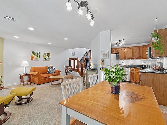There is so much to love about this immaculate "Radcliffe" model townhome in award winning Ridgefield Condominiums! From the box window & wood burning fireplace in the open living/dining area to the fully applianced kitchen with granite counters & plenty of cabinets! You'll really enjoy the private patio & stonewall in the backyard! Upstairs offers a huge Main bedroom with a full wall closet and dressing area connected to the full bath. Upstairs includes a spacious 2nd bedroom & convenient laundry area. Central AC. Attached garage and lots of storage in all the right places!! Enjoy all of Ridgefield's amenities: pool, tennis, basketball, clubhouse, exercise room, walking trails & many social activities. Onsite management. Condo fees ALSO INCLUDE: expanded cable TV, Internet, and FULL (in & out) master insurance coverage! Pets are allowed! (max of 2) subject to Abutter approval. Seller has one named exclusion. See Disclosures.
