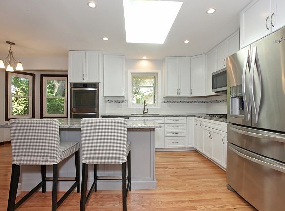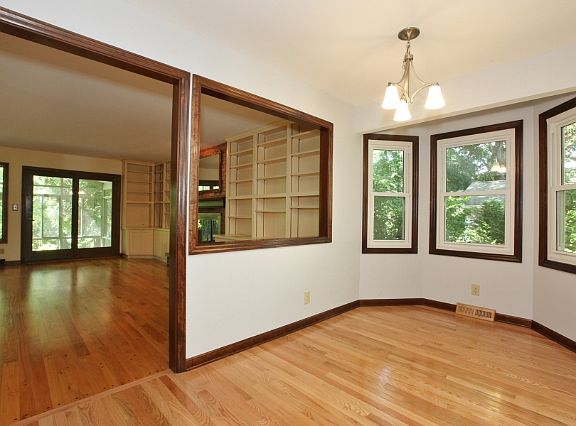 Outstanding 4BR ranch with gleaming hardwood floors. Beautiful brick fireplace and built-ins highlight the lovely living room. Remodeled kitchen features granite counters, double oven, gas range, and sky light! Bright and open eating area & formal dining room. Spacious owner's suite with bay window, 2 double closets, and updated dedicated bath. Updated hall bath offers dual sink vanity, tile floor, & Corian counters. Three additional sizable bedrooms with ample closets. Laundry room comes complete with a sink and cabinets for storage. Unlimited possibilities for the lower level rec room! Perfect place to watch the big game or for the kids to play. Enjoy the outdoors in the fantastic 3-season room and large paver patio. Deep fenced yard with mature trees and beautiful landscaping!