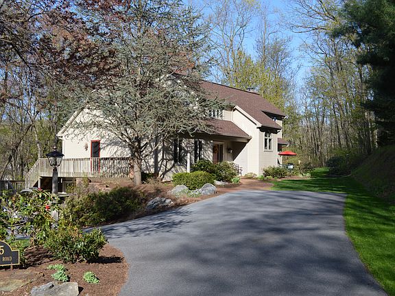 This one owner custom built home is in immaculate condition on a very private 3.68 acre lot. Outstanding kitchen with custom cabinetry. New roof and heating/cooling systems 2012. New deck and patio 2010. Remodeled master bath 2005 Fully wooded lot bordering on stream affords privacy and an abundance of wildlife. Outdoor spaces include a very large multi-level wooden deck, concrete patio, and a stone paver porch. Garden shed with electric service and propane heat is currently utilized as a four season orchid growing house. The property is configured and provided with utilities so that an additional house (lot) may be constructed to utilize the common driveway.