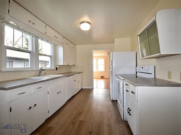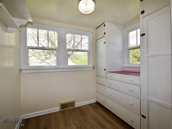 Built in 1940, this Downtown Bozeman property has maintained much of its original character, replete with its frosted glass sliding door cabinet, built-in storage, and arched dining nook.