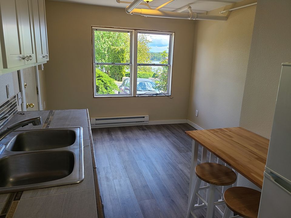 Enjoy Spectacular views of the Columbia River and feel on "Top of the World" in your renovated, ground floor, 1 bedroom with the best "Wild and Scenic" river views for miles! This charming brick 1918 building on a cliff overlooking the river and Old town St. Helens. Call or email to schedule a viewing today! AC and dishwasher! FREE APPLICATION, most utilities paid! Electric runs only $25 a month! Free Parking Spot, Free Garden Plot! Stunning views of of the Columbia River from your living room windows with this charming, well designed ground floor, one bedroom in a secure pre-war building with lots of natural light, and panoramic views. Beautiful, restored closet and sleeping loft in the bedroom. Lots of vintage touches and original built ins, period light fixtures, full, renovated galley kitchen, including dishwasher, new countertops with beautiful, restored original hardwood floors with windows facing the Columbia River in the living/ kitchen area and Historic St. Helens from your cliff top view! Secure laundry, new machines on site, hot water included which means low, low electric bills, usually around $25 a month. Secure off street parking in front of the building with security cameras. Free Garden space in our beautiful, private community gardens free to residents! Great, historic neighborhood on a quiet, dead end street. One block to the river and cool shops, restaurants, movie theater, park, public marina and more! Find out why the Oregonian calls St. Helens the best kept lifestyle secret! No felonies, evictions. Annual lease only, no month to month. Download our application at for free and get more information about our building and lovely town. No smoking, small pet friendly, annual lease only